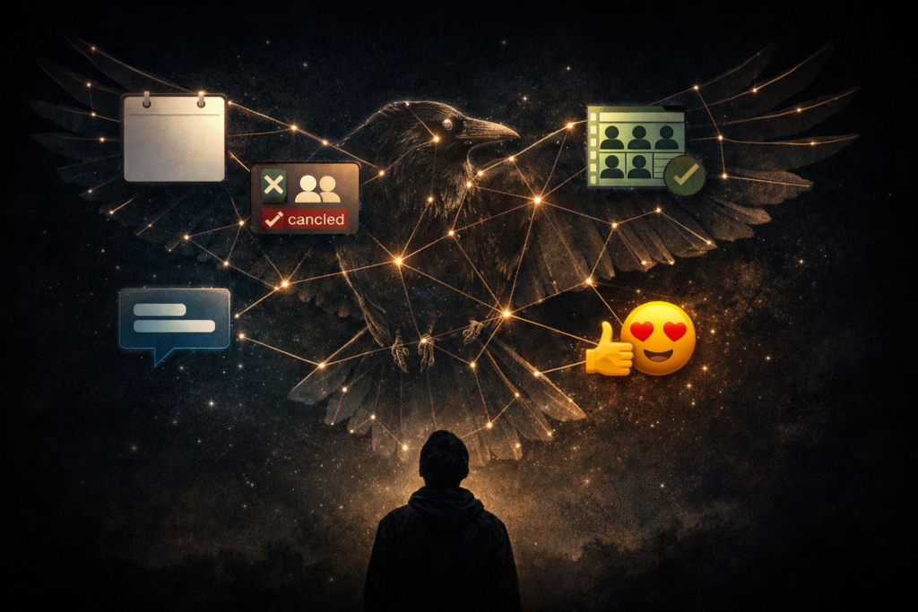 So the next time your calendar drops a blank, mandatory block like a dark feather, remember: the invite isn’t always the danger. The danger is what your brain builds in the silence between now and then.